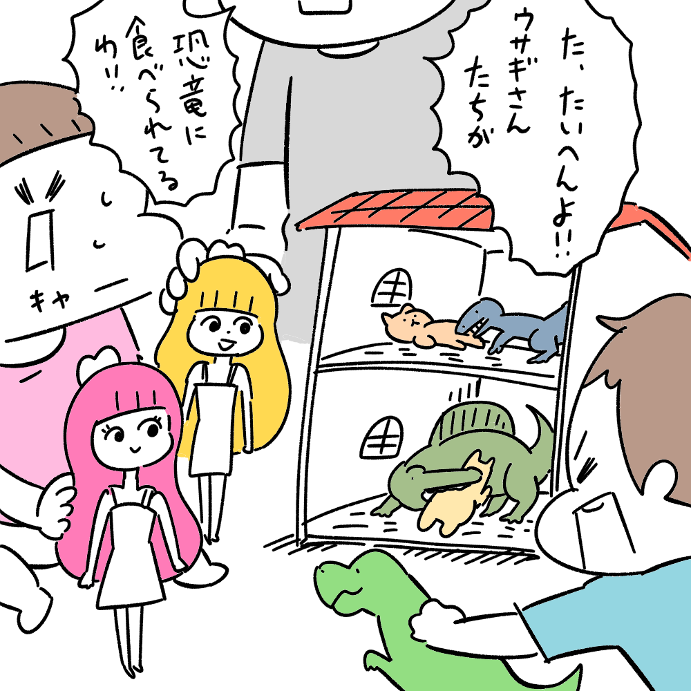 オネエ 2019年09月15日 今日もいつものように恐竜人形ごっこに励む2人。遊び方ワンパターン過ぎて心配になってくる・・・リカちゃんたちがシルバニアファミリーのお家に遊びに来たら、住民たちが小型肉食恐竜に襲われているという状況。荒らされた室内の作り方、やたら生々しい襲い方、完全にYoutubeの見過ぎです・・・。リカちゃん役で女の子口調してたら癖になってくる。 「日常」カテゴリの最新記事 < 前の記事次の記事 > コメント コメントフォーム 名前 コメント 記事の評価 リセット リセット 顔 星 情報を記憶 コメントを投稿する