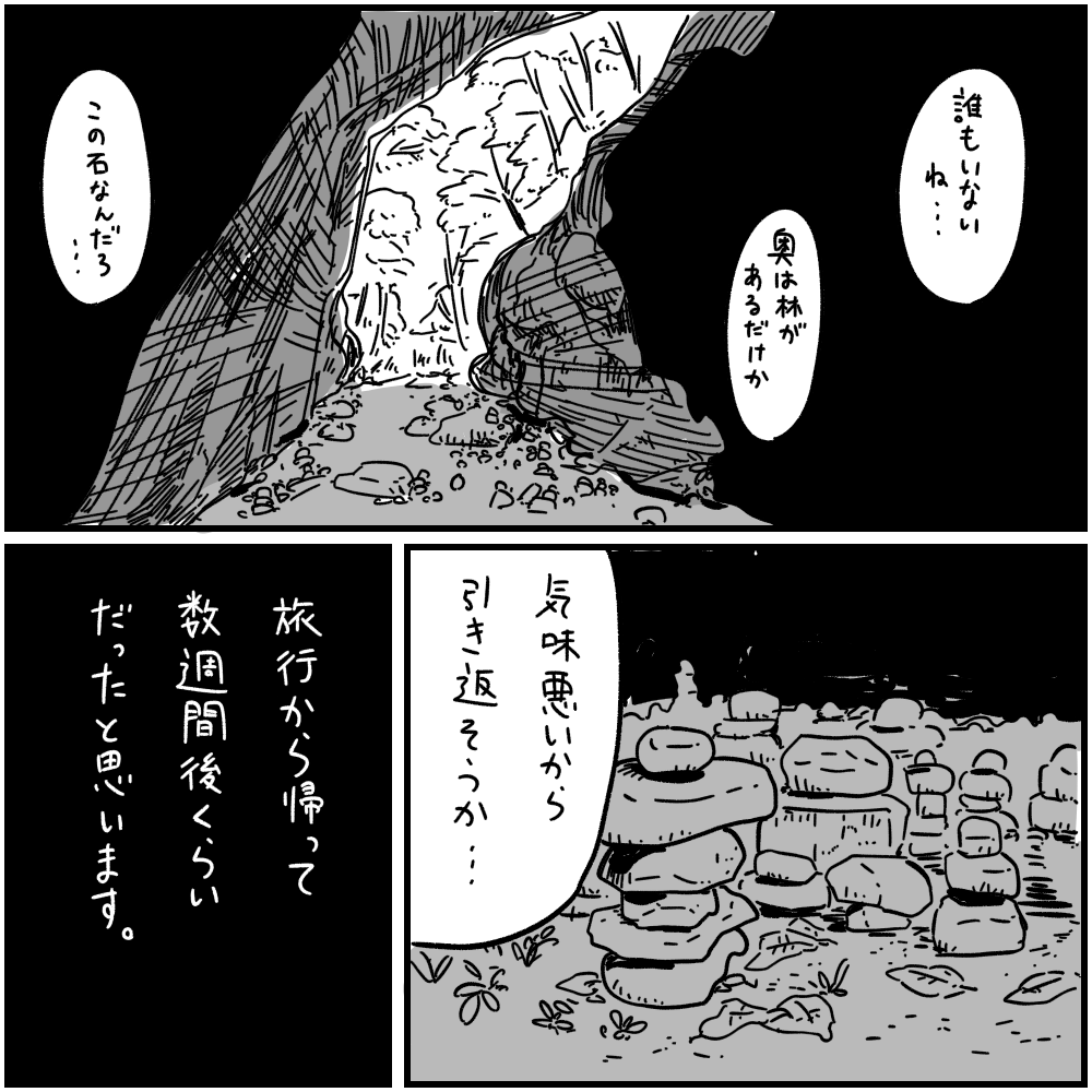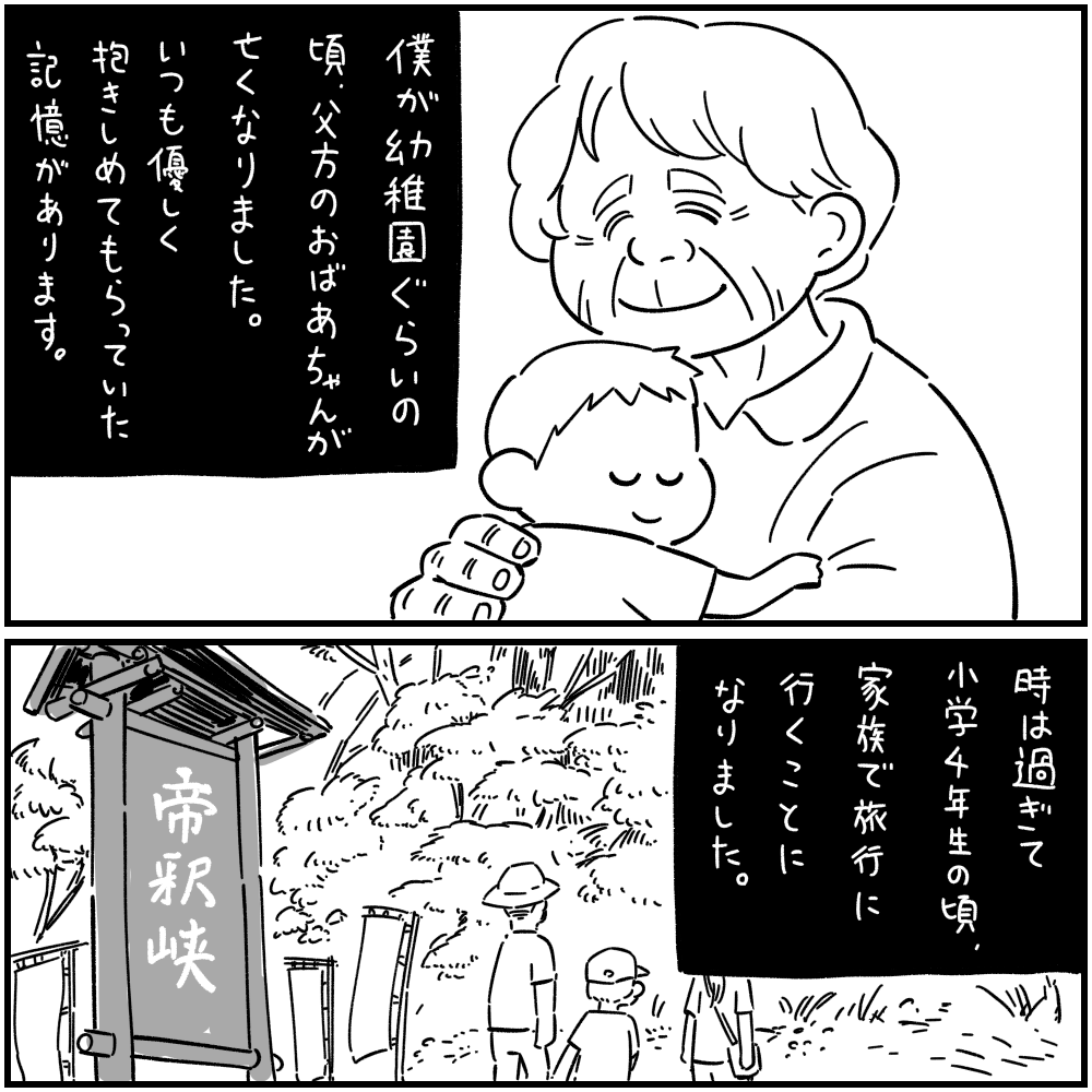 フォロワーさんの「本当にあった怖い話」その12 2020年08月24日 フォロワーさんの「本当にあった怖い話」その12 「フォロワーさんの体験談」カテゴリの最新記事 タグ :#本当にあった怖い話#ホラー#漫画 < 前の記事次の記事 > コメント コメント一覧 (2) 1. はーちゃん 2022年02月03日 09:59 私も大好きなおばあちゃんを思い出しました。 私の娘が病気になって意識不明の時があり夢におばあちゃんが出てきて娘に「あんたはこっちきちゃダメだよ!帰りな!」と言っていて知らない人が娘を連れて暗い道を歩いて帰るというものでした。 その夢から数日後娘の意識が戻りました。 祖母が娘を助けてくれたんだと思います。 0 siroyagisanti がしました 2. も 2024年04月21日 19:10 私も同じような経験をしたことがあります。 物心つく前だったので鮮明には覚えていないのですが父の友人たちとキャンプに行った際に川から上がって来た男の子に呼ばれていたらしく(すごく霊感が強い方が一緒に来ていて聞いたそうです)私が近づいて行くところを本来、曽祖父になる予定だった(戦死してしまった)方が連れ戻してくれたそうです。父からあとで聞いた話ですが、その方の戦死した日と私の誕生日が一緒で幼い時の顔がすごく似ていたそうです。 0 siroyagisanti がしました コメントフォーム 名前 コメント 記事の評価 リセット リセット 顔 星 情報を記憶 コメントを投稿する