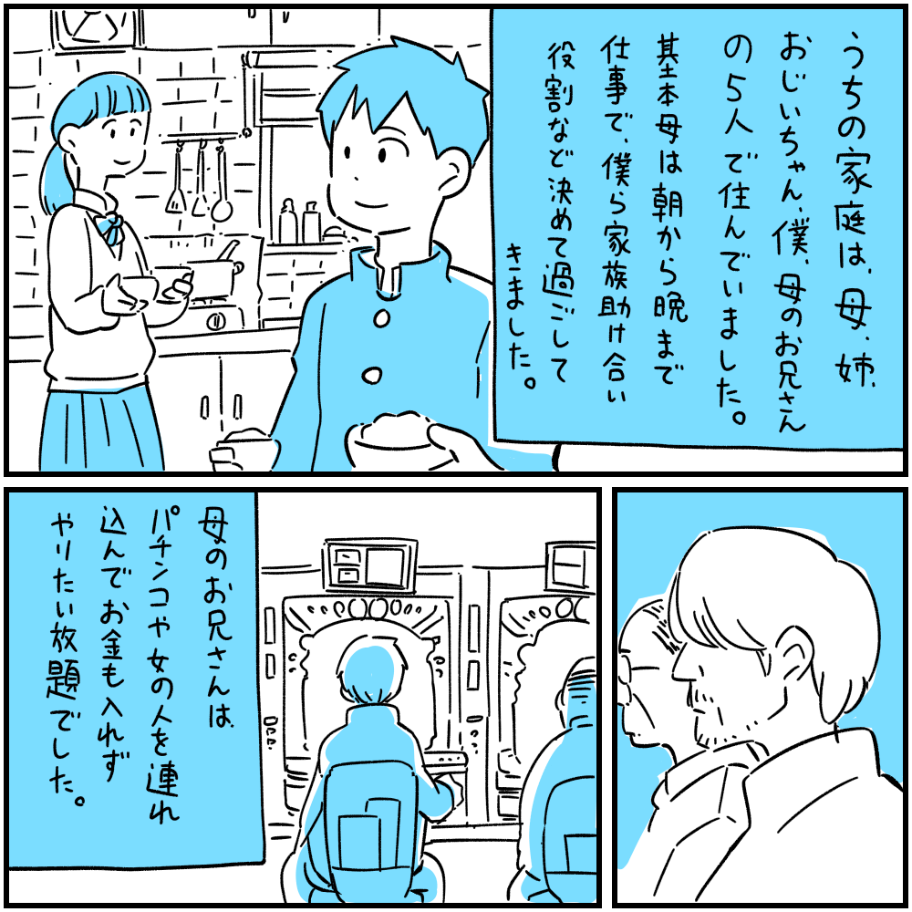 フォロワーさんの「10代の話」その10 2020年11月27日 投稿者さんのインタビュー記事はこちらです 「フォロワーさんの体験談」カテゴリの最新記事 タグ :#10代の話#体験談#withyou < 前の記事次の記事 > コメント コメント一覧 (3) 1. まゆげ太い 2021年09月14日 11:45 児童相談所に行っている間、おねえさんは一緒に暮らしてはなかったのでしょうか? 0 siroyagisanti がしました 2. ある 2021年11月01日 11:56 児相に行った時点で兄を追い出すのが普通だし、それができないなら一言目のセリフはどういうこと?ではないと思う。 0 siroyagisanti がしました 3. もやもやがのこる 2021年12月06日 21:02 お母さんの「どういうこと」に納得いかなくて インタビュー記事も読んだけどやっぱり納得できなかった お母さん施設に面会来てたじゃん。健忘症なの? それとも作者が「どういうこと」ってセリフにしたせいで 辻褄が合わなくなってるの?わかんないこの作品 0 siroyagisanti がしました コメントフォーム 名前 コメント 記事の評価 リセット リセット 顔 星 情報を記憶 コメントを投稿する