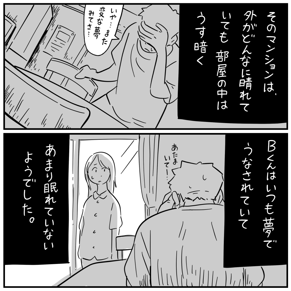 怖い話66「目隠し」前編 2021年10月16日 フォロワーさんの本当にあった怖い話その66「目隠し」後編につづく↓更新されたとき通知が来ます!怖い話の単行本が21日発売です!このシリーズ続けたいので買ってくださいお願いします!フォロワーさんの本当にあった怖い話(1) (アクションコミックス)しろやぎ 秋吾 「フォロワーさんの体験談」カテゴリの最新記事 < 前の記事次の記事 > コメント コメント一覧 (6) 1. ひ 2021年10月16日 18:16 恨みパターンかな、、、 今回も怖そう! いつもまんがたのしみにしてます! 0 siroyagisanti がしました 2. こりごりら 2021年10月16日 18:23 生霊的な何かかな…にしてもお金にだらしないのは将来性が見えないから別れて正解! 0 siroyagisanti がしました 3. ゆー 2021年10月16日 18:43 気になるううう!!! 0 siroyagisanti がしました 4. ヤイサホー!ゲバル 2021年10月16日 19:35 Bくんの先輩が仕事の先輩って意味だとしたら先輩=元彼の可能性はあるよな。恨みで、わざと事故物件を紹介したとか? 0 siroyagisanti がしました 5. るり 2021年10月16日 21:09 私も3年前別れた元彼から未だに連絡来ます😥金縛りにもあいます‥結末か気になります😱 0 siroyagisanti がしました 6. あっこ 2021年10月16日 21:25 生霊ですな… はやく続きが見たいです!! 0 siroyagisanti がしました コメントフォーム 名前 コメント 記事の評価 リセット リセット 顔 星 情報を記憶 コメントを投稿する
