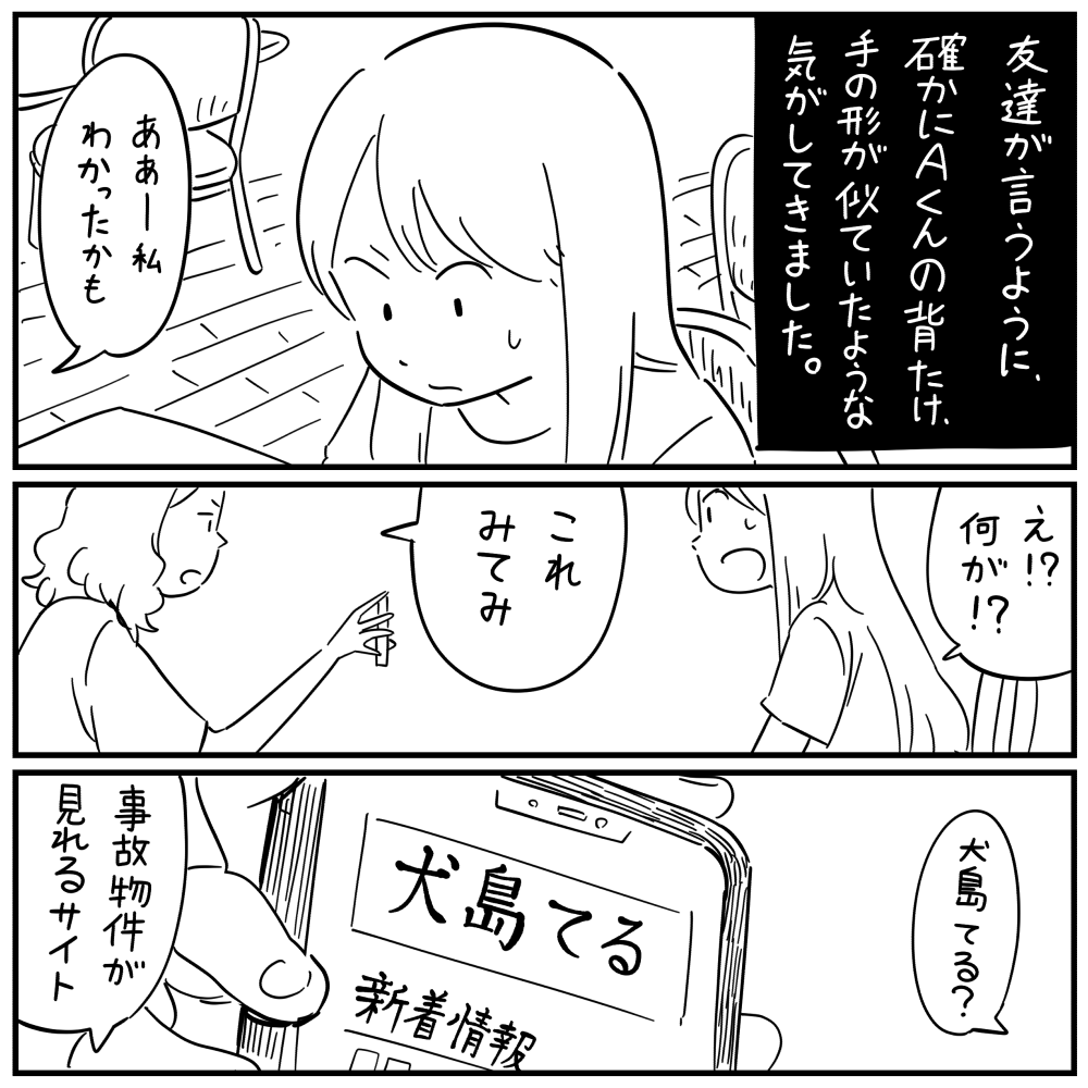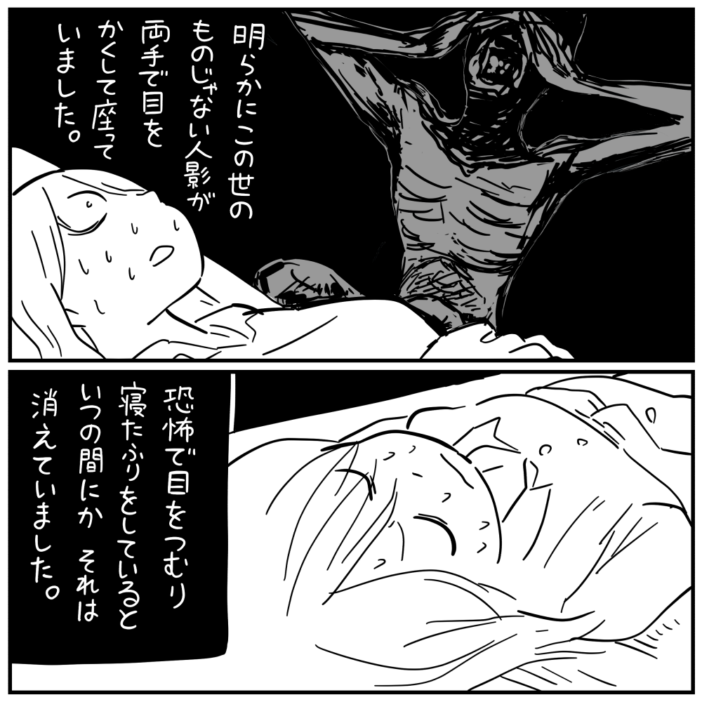 怖い話66「目隠し」後編 2021年10月17日 フォロワーさんの本当にあった怖い話その66「目隠し」後編前編はこちらです 「目隠し」おわり↓更新されたとき通知が来ます!怖い話の単行本が21日発売です!このシリーズ続けたいので買ってくださいお願いします!フォロワーさんの本当にあった怖い話(1) (アクションコミックス)しろやぎ 秋吾 「フォロワーさんの体験談」カテゴリの最新記事 < 前の記事次の記事 > コメント コメント一覧 (28) 1. あ 2021年10月17日 18:30 彼氏とばっちりじゃん… 0 siroyagisanti がしました 2. こう 2021年10月17日 18:38 なんか、スッキリしない、、 0 siroyagisanti がしました 3. あ 2021年10月17日 18:38 彼氏関係なかった… 紹介してくれた物件が事故物件だったてことだよね 0 siroyagisanti がしました 4. ポー 2021年10月17日 18:48 元カレなんも関係ない(笑) 0 siroyagisanti がしました 5. hfhr 2021年10月17日 18:58 その物件を紹介した先輩と縁切るべき 0 siroyagisanti がしました 15. 秋なす 2021年10月17日 21:01 >>5 先輩も知らなかったのかも知れない、、と思いたい🥲 0 siroyagisanti がしました 6. 思い付くのは 2021年10月17日 19:01 高島平かなあ 0 siroyagisanti がしました 23. 廃人 2021年10月18日 16:38 >>6 自分も高島平だと思いました! 0 siroyagisanti がしました 7. かび 2021年10月17日 19:04 元カレはなんだったの? 0 siroyagisanti がしました 8. 松松 2021年10月17日 19:17 物件を紹介した方が元彼だと思って見てました………汗 0 siroyagisanti がしました 9. さっほろ 2021年10月17日 19:40 そのマンションとても怖いですね… 0 siroyagisanti がしました 10. しろ 2021年10月17日 19:43 え、その紹介した先輩は知ってたんですかね? 0 siroyagisanti がしました 11. 日本 2021年10月17日 20:21 全然意味分からない、、、 分かるけど、分からない。 0 siroyagisanti がしました 12. こじま 2021年10月17日 20:32 なぜ漫画にしようと思ったのか謎なレベルで中身がない 0 siroyagisanti がしました 13. ふあく 2021年10月17日 20:37 ん?結局、元カレは関係無かったってこと? なんか最近エピソードのレベルが残念な感じがする。 前半後半分けるほどの話じゃないし。 0 siroyagisanti がしました 14. 【急募】きさらぎ駅からの生還方法 2021年10月17日 20:46 元カレはミスリードだったのね。 小説でも良くみる構成だしガッカリするような事じゃ無いと思うけど…今はわかりやすい単純な物語の方がウケるのかな。 0 siroyagisanti がしました 16. まる 2021年10月18日 00:50 いつも楽しみに読ませてもらっています!目を覆って座ってる男の人の絵、髪とかリアルにボサボサしてて、おでこのシワから隠れてる部分の表情を想像できたりと、とても怖かったです! 漫画を無料で見せてくださりありがとうございます…! 中には、怖くない面白くないとか、簡単に言ったり書きこんだりしる人もいますが、絵をもっとじっくりよく見て想像したりすれば、ホラー漫画をもっと楽しめると思います。 0 siroyagisanti がしました 17. 怖かったよ 2021年10月18日 06:25 普通に考えてこの世のものじゃないものが出た時点で怖い。その物件紹介した先輩も違う意味で怖い。元彼はフェイクに使われただけで我々読者を欺く為。 事故物件と知った時のゾッとする感じめっちゃわかるよ 0 siroyagisanti がしました 18. a 2021年10月18日 08:52 結局元彼の生き霊だったのかははっきりと分からない…というところが、リアルです 0 siroyagisanti がしました 19. 名無し 2021年10月18日 12:10 こういうハッキリしないのが一番怖くて好き 0 siroyagisanti がしました 20. こぴ 2021年10月18日 12:18 これはひどいな。 0 siroyagisanti がしました 21. あのこ 2021年10月18日 12:36 実は元彼が前そこに住んでて亡くなってたとかだったら面白い。 0 siroyagisanti がしました 22. ななし 2021年10月18日 12:46 事故が起こりやすいとか出るとか「現れやすい」場所なんだろう。 元カレは本当に生き霊飛ばしていたかも知れないし、タイミングで具体的なカタチを現したのかも知れない。 その後引っ越して何も無いなら、生き霊はその場所に捕まって動けなくなってるかもよ。 生き霊、出した人間の元に帰れないと人間が衰弱するらしいね。 0 siroyagisanti がしました 24. ののの 2021年10月19日 08:12 へ?元彼氏はなんなの??? 前半まったく関係ない話をされていただけ? 元カレが名誉毀損レベルw 0 siroyagisanti がしました 25. 名無し 2021年11月02日 11:03 目隠ししてくる元カレ 目隠ししてる幽霊 ちょっとリンクしてるから勘違いテヘってだけでしょ 0 siroyagisanti がしました 26. ななし 2022年01月06日 04:20 宝くじ当たったらアパート建てて不動産収入があるといいよねえって思ってるので、そのマンションの大家さんを気の毒に感じた でもアパートとかマンション経営の難しさはそこなのかもなぁとも思う あるあるというか 0 siroyagisanti がしました 27. ※名前を入力してください 2022年01月31日 12:14 大島てるさんじゃないですか、、、笑 0 siroyagisanti がしました 28. 名前 2022年05月04日 15:07 え?関係ないって言ってる人いるけど関係はあるよね。元カレの生霊だよ。事故物件