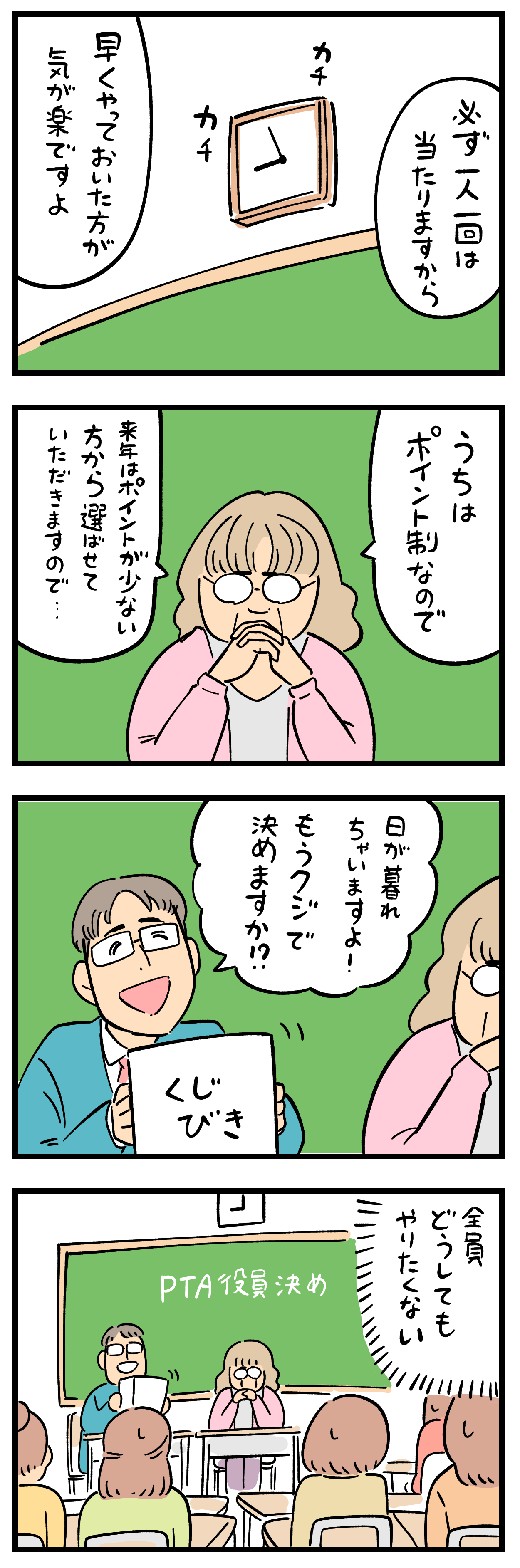 このポイント制はいいな、うちは二度目も抽選で当たる可能性ありと言われてみんなで直訴した。