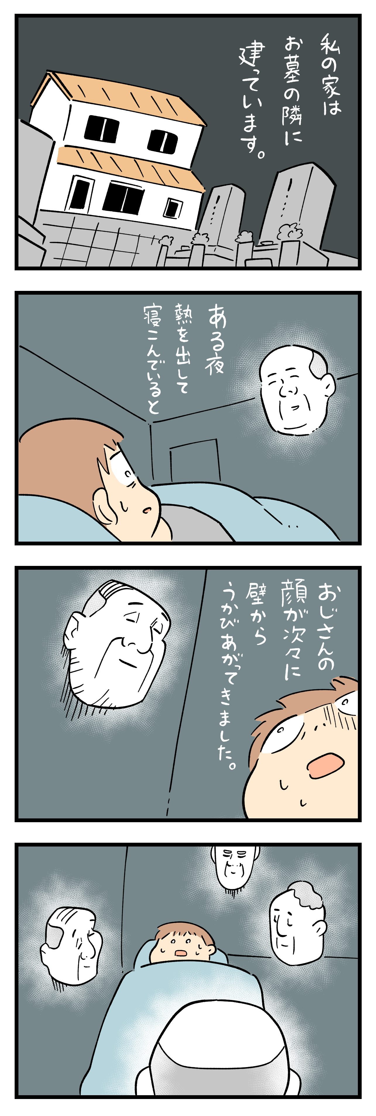 「ちょっと怖い話」31 2022年06月15日 ひとこと体験談「ちょっと怖い話」その31体験談募集中ですツイッターかインスタのDMで教えて下さい! 「フォロワーさんの体験談」カテゴリの最新記事 タグ :#ちょっと怖い話 < 前の記事次の記事 > コメント コメント一覧 (20) 1. ななこ 2022年06月15日 18:07 …オチはどこ? 0 siroyagisanti がしました 2. 名前がなし美 2022年06月15日 18:07 え、このお話、続きはありますか?🥺💦 このままだと、意味不で怖…です💦 0 siroyagisanti がしました 3. あかち 2022年06月15日 18:23 おじさんの幽霊ばっかりということと、心配して見守ってくれてるからこわいようなかわいいような…ということじゃないでしょうか! でも絵でみるとかわいいけどリアルだったらおじさんでもこわい笑 0 siroyagisanti がしました 4. 名無し 2022年06月15日 18:33 こわい状況なはずなのに、おじさんの顔オンリーなのと複数人だからなんだかシュールな状況ですね🤣🤣🤣 0 siroyagisanti がしました 5. 英世 2022年06月15日 18:51 具合はどうじゃー 具合はどうじゃー って心配してくれてる笑 0 siroyagisanti がしました 6. お墓から 2022年06月15日 18:52 心配して見に来てくれたんかな…… 知らんおじさんだけど😅 0 siroyagisanti がしました 7. 秋 2022年06月15日 19:24 冷やしてくれてる…?(⊙ꇴ⊙) 0 siroyagisanti がしました 8. ちこ 2022年06月15日 19:39 これだけ? 0 siroyagisanti がしました 9. あらた 2022年06月15日 20:41 シュール!! 0 siroyagisanti がしました 10. ナナシ 2022年06月15日 21:50 ラストめっちゃ笑いました🤣 どのお話も好きですが怖い話でブログを知ったので 最近更新頻度が高くて嬉しいです〜! 0 siroyagisanti がしました 11. みほ 2022年06月15日 22:23 じいさんサミット! 0 siroyagisanti がしました 12. ななし 2022年06月15日 23:05 ほんのり笑ってて和んだ でもこわい 0 siroyagisanti がしました 13. なまえがなしこ 2022年06月15日 23:39 たぶん、普段からいるんだろうな 0 siroyagisanti がしました 14. おじさま達は、 2022年06月16日 02:48 みんな、お医者さんかな?☺️ 0 siroyagisanti がしました 15. はー 2022年06月16日 12:44 お墓の近くに住んでないし、病気にもなっていたわけでもありませんが中学生の頃、目つむると知らない人の顔が次々とリアルに思い浮かぶのは少し怖かったです。 0 siroyagisanti がしました 16. 東の明星 2022年06月16日 23:47 霊道?普段は見えないけど体調が普通じゃなくて見えたとか?「墓地を見下ろす家」っていうホラー小説思い出しちゃった 0 siroyagisanti がしました 17. りー 2022年06月17日 07:20 こういう時って、後から考えたら怖い場面のはずだけど、何故かその時は怖くは感じなくって。んん?なんか用かい?ってくらいに、ぼんやりと受け入れていたなあ、てな感じになってるんじゃないんでしょうかねえ。 実体験が元のお話だと、むしろそんな強烈なオチは無いかも。 0 siroyagisanti がしました 18. ちゅ 2022年06月18日 10:03 しろやぎさんのイラストのおじさんが 可愛すぎて、この顔なら出てきても平気笑 0 siroyagisanti がしました 19. トーコ 2022年06月25日 14:05 おじいさんにやたら人気がある! 生きている人だったら お菓子もらえたりしたかもしれないけど幽霊だからなぁ。 0 siroyagisanti がしました 20. (。-_-。) 2022年07月06日 09:20 わたしもある! 生首おじさん! でも、わたしの場合はガッツリ目があってたし、蛍光色のおじさんだった。 0 siroyagisanti がしました コメントフォーム 名前 コメント 記事の評価 リセット リセット 顔 星 情報を記憶 コメントを投稿する
