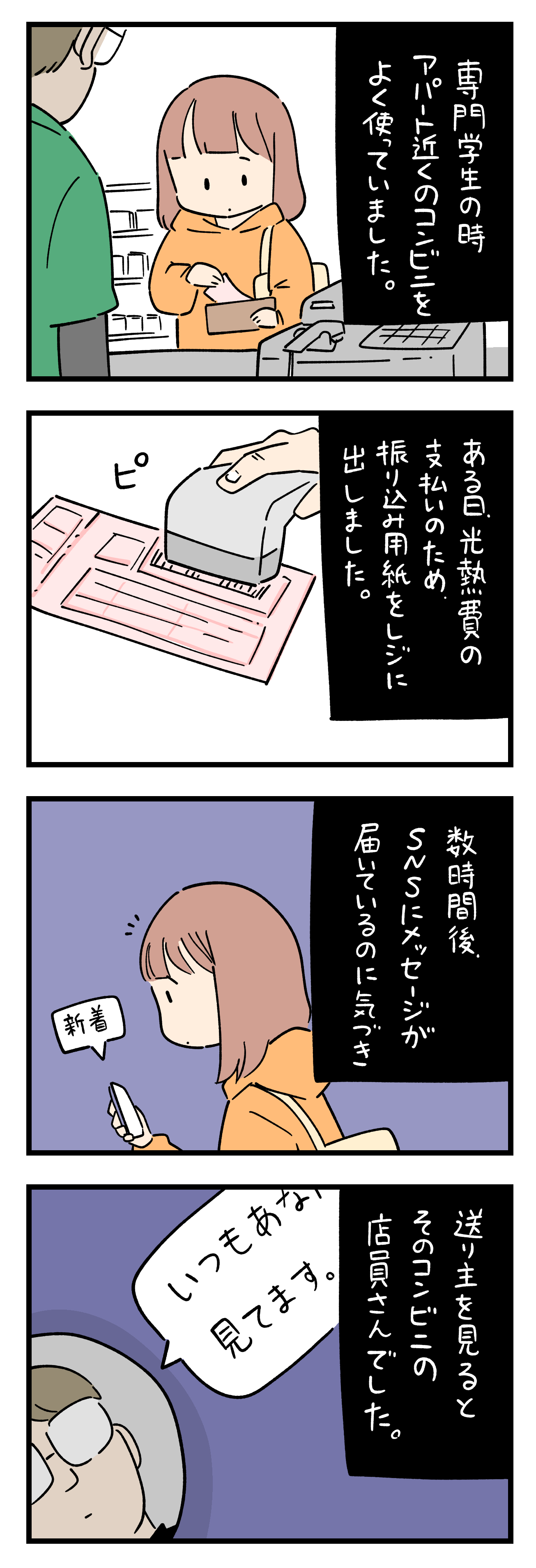 最初の連絡では素性を明かさなかったため、犯人探しのために一回だけ会って確認した。(会った時にコンビニの店長と判明)