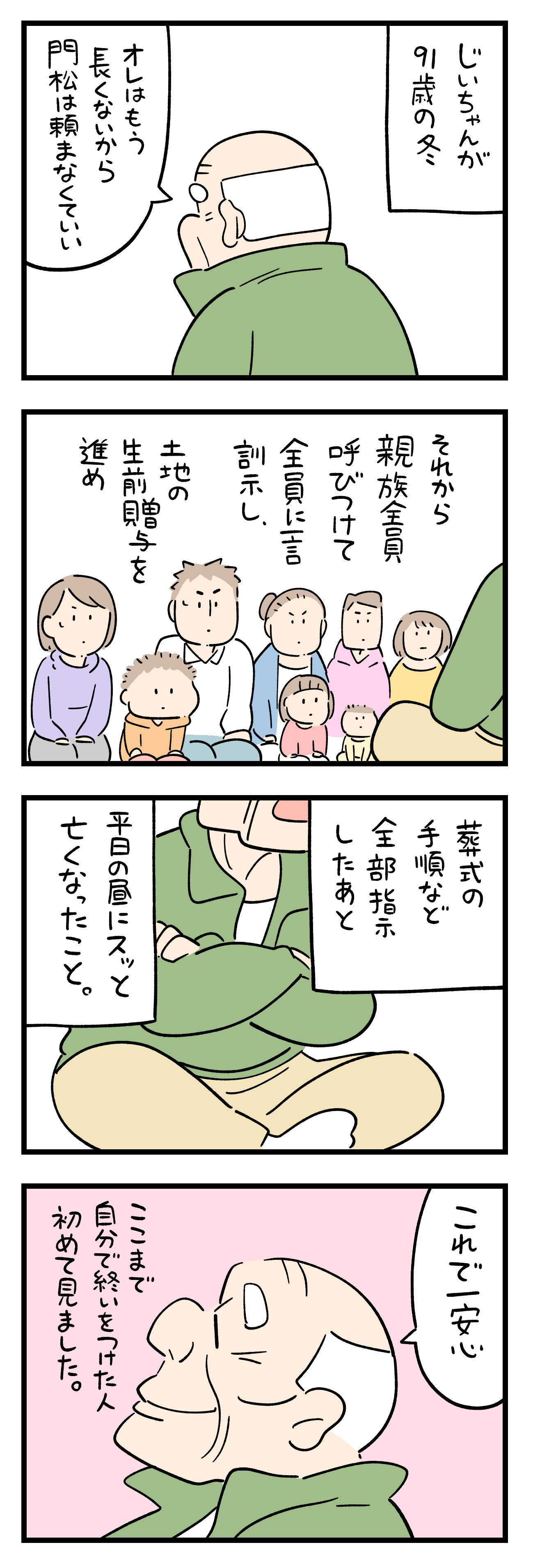 「この人最高だなと思った事」2 2023年09月06日 ひとこと体験談「この人最高だなと思った事」その2書籍出ました ちょっと怖い話50話まとめました キュンとした出来事50話まとめました ひとこと体験談の電子書籍です全巻無料で読めます! 体験談募集中ですツイッターかインスタのDMで教えて下さい! 「フォロワーさんの体験談」カテゴリの最新記事 タグ :#この人最高だなと思った事 < 前の記事次の記事 > コメント コメント一覧 (8) 1. 2023年09月06日 18:10 カッコいいなぁ 0 siroyagisanti がしました 2. 恵実 2023年09月06日 18:10 お金は揉めるからね...嫌になるよ。 0 siroyagisanti がしました 3. みかん 2023年09月06日 18:15 おじいちゃ~ん! 凄いなぁ。 私の父も、「葬儀屋は○○で、△△は××で...」と私に言付けて、その数日後に亡くなりました。 本人に自覚があるのかは分からないけど、何かあるのかも知れないですね。 0 siroyagisanti がしました 4. Pakupaku 2023年09月06日 18:40 素敵な横顔… 0 siroyagisanti がしました 5. BB 2023年09月06日 19:03 私の義母は、「今日はしんどいけん、病院行って来るったい」と1人で歩いていつもの病院へ行ったら、即入院で、数日のうちに亡くなりました。87歳でした。 ご長男家族と同居でしたが、当日まで自分の事は全部自分でして、一切面倒をかけずに、最期までキチンとした女性でした。 自分もそうありたいと、尊敬しています。 0 siroyagisanti がしました 8. こじ 2023年10月01日 01:54 >>5 即入院って…すごく我慢強い方で無理されてなかったなら良いですね💦 それにしても素晴らしい人ですね✨ 0 siroyagisanti がしました 6. それは… 2023年09月06日 22:04 死に方は選べない この方の場合 運が良かったのだろう 0 siroyagisanti がしました 7. マキタ 2023年09月07日 08:23 天珠を全うする 生きてたら病気や事故で いつ最後が来るかなんて分からない。 こんなに難しい事をやってのけた。 凄いお爺さまですね! 0 siroyagisanti がしました コメントフォーム 名前 コメント 記事の評価 リセット リセット 顔 星 情報を記憶 コメントを投稿する
