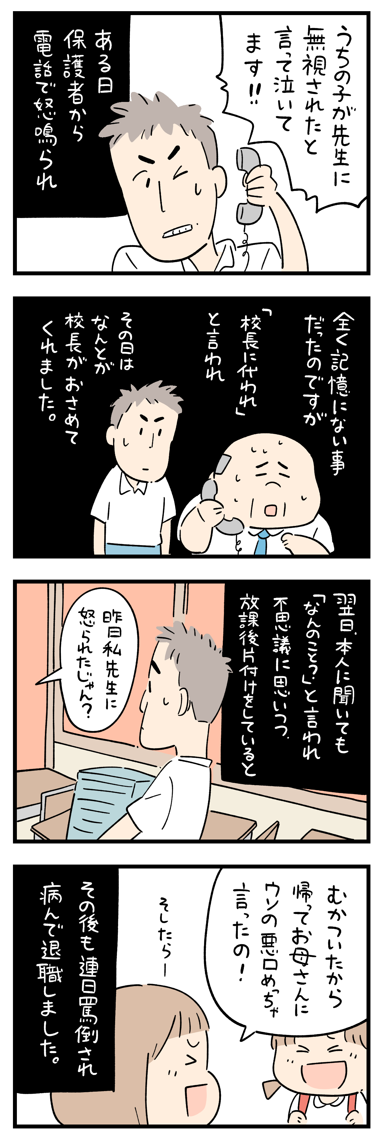 「ちょっと怖い話」144 2023年09月20日 3巻つくりました ひとこと体験談「ちょっと怖い話」その144書籍出ました ちょっと怖い話50話まとめました キュンとした出来事50話まとめました ひとこと体験談の電子書籍です全巻無料で読めます! 体験談募集中ですツイッターかインスタのDMで教えて下さい! 「フォロワーさんの体験談」カテゴリの最新記事 タグ :#ちょっと怖い話 < 前の記事次の記事 > コメント コメント一覧 (20) 1. ……… 2023年09月20日 18:08 末恐ろしい😵 0 siroyagisanti がしました 2. 。 2023年09月20日 18:09 こうやって教師は本物のロリコンしか残らなくなる 0 siroyagisanti がしました 3. にゃ 2023年09月20日 18:10 ひどい… 0 siroyagisanti がしました 4. なし 2023年09月20日 18:10 中学でもあったなぁ、、 先生病んでこなくなること度々あったし 別のクラスで嫌われてる先生がいたんやけど、男子が料理作る授業の時に先生の分に洗剤入れて、後々わかったんやけどその先生妊娠してて胃洗浄したみたい、母親になって思うけどほんまあれは酷かった 0 siroyagisanti がしました 5. とも 2023年09月20日 18:23 >>4 酷すぎる。子どもとはいえ絶対やってはいけないですね。その子(たち)は咎められたんでしょうか? 0 siroyagisanti がしました 7. ら 2023年09月20日 18:53 >>4 先生を流産させる会というあらすじ読んだだけで気分が悪くなる映画を思い出してしまった(見てはいない) 後々分かったなら妊娠を知っててやった訳ではないのは分かるけど(先生自身も知らなかった?)、妊娠関係なく異物混入はアウトだよ… 0 siroyagisanti がしました 11. ん 2023年09月20日 19:39 >>7 犯罪ですよね。 0 siroyagisanti がしました 6. ゅぅ 2023年09月20日 18:44 ひぃっ …怪物だぁ〜れだ…!? 0 siroyagisanti がしました 8. こういうガキは 2023年09月20日 19:01 懲らしめないとね💢 0 siroyagisanti がしました 9. 知奈津 2023年09月20日 19:23 似たような話で生徒が教師をイジメて自殺したってことが実際に起きてるんだよね。 嫌な時代になったな...。 その生徒、高校生になったら電車で『痴漢された』とか嘘ついたりするようになるんじゃない? 0 siroyagisanti がしました 10. BB 2023年09月20日 19:31 子供がその頃、そんな事して面白がって笑ってたとしても、成長して、分別ある大人になったとしたら、心の底から後悔すると思う。 大人になってもそれに気付かなかったら、、、天罰がくだるんじゃないかな、、、せめてそうしてよ。神様、、、 0 siroyagisanti がしました 12. こわ・・・ 2023年09月20日 21:25 親が子供を過保護にし過ぎる。 躾が出来ない親が増えてるよ。 0 siroyagisanti がしました 13. そら教室減るて 2023年09月20日 21:25 全教室と廊下や下駄箱等監視カメラ設置するしかないな。 0 siroyagisanti がしました 14. ↑教室じゃない、教師の間違い 2023年09月20日 21:26 てへぺろ 0 siroyagisanti がしました 15. それは 2023年09月20日 22:25 生徒だけじゃない。親がバカ 0 siroyagisanti がしました 16. 厄介だよね 2023年09月20日 22:43 悪慈恵が働く子。小学生の頃、子供同士だけだと髪を引っ張ってきたり押し倒したりしてきた女の子。うちに遊びに来ると理由付けて子供部屋から私を追い出して部屋の中でコソコソ。担任と親の前では良い顔ばかり。平気で嘘ついて保身。周りの大人はその子だけを信じて私は悪者。しかも私がその子の家で勝手に物を漁ってキーホルダー盗んだって嘘までつかれて散々だったよ。きっと大人になった今でも相変わらずなんだろうな。 0 siroyagisanti がしました 19. 居るね、そういうの 2023年09月21日 12:33 >>16 そういうのは、被害者が黙っていたとしても(信じられていなくても)いずれ露見するもんだよ。 それもやらかしてる本人が一番バレたくないタイミングでね。 成人済みって事みたいだし、婚約とか結婚のタイミングとか、ママ友の付き合いだとか、手癖悪そうだから既に窮地に立ってるかもよ? 0 siroyagisanti がしました 17. わかるわ~ 2023年09月20日 23:06 うちの主人もそれで子供関係の仕事辞めた。 親が全て我が子の言うことが正しいになってるから、下手なことも言えないし指導もできない。 我が子にはそんなことさせないようにしよう。 悪いことしたら怒られるのは当たり前なんですけどね。 0 siroyagisanti がしました 18. かときち 2023年09月21日 08:42 そういう子って、家では怒られた事ないんでしょうね。 良い事と悪い事の区別がつかないまま大人になったら、ちょっとどころかホントに怖い話になっちゃう😱 そういう人間にはいつか天罰が下ると思いたい…。 0 siroyagisanti がしました 20. あ 2023年09月23日 15:26 自分に返ってくるのに 0 siroyagisanti がしました コメントフォーム 名前 コメント 記事の評価 リセット リセット 顔 星 情報を記憶 コメントを投稿する