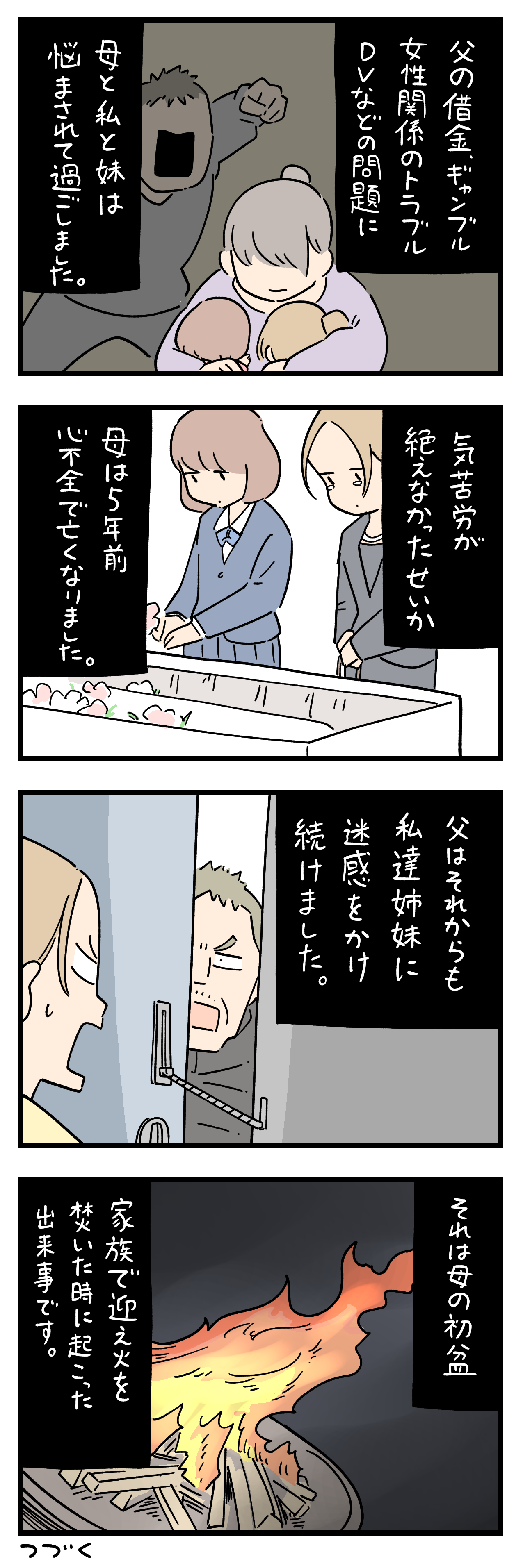 怯えて機嫌を取る妻と子供を見て
