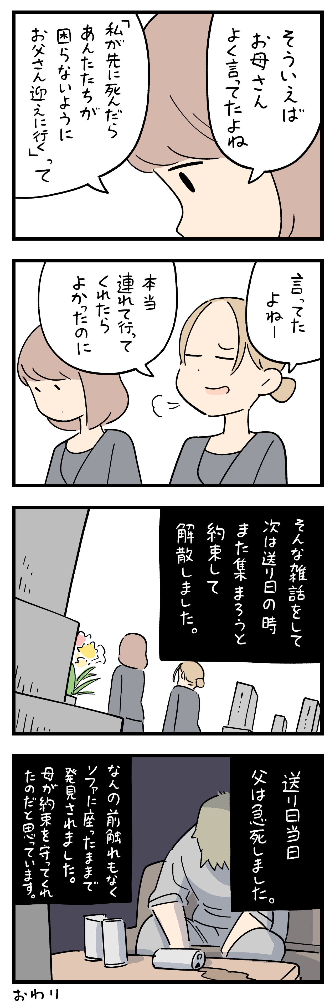 「ちょっと怖い話」174-② 2024年01月27日 4巻つくりました ひとこと体験談「ちょっと怖い話」その174-②書籍出ました ちょっと怖い話50話まとめました キュンとした出来事50話まとめました ひとこと体験談の電子書籍です全巻無料で読めます! 体験談募集中ですツイッターかインスタのDMで教えて下さい! 「フォロワーさんの体験談」カテゴリの最新記事 タグ :#ちょっと怖い話 < 前の記事次の記事 > コメント コメント一覧 (5) 1. ひゃー🫣 2024年01月27日 18:15 お母さん ちゃんと約束守ってる✨ 0 siroyagisanti がしました 2. BB 2024年01月27日 18:32 人の心や魂はやっぱり生きていますよね。 説明できない事がたまにありますもんね。 でも、だからこそ、愛する人を思いやる気持ちを信じて、頑張ろうと思えます。 つらくても、いつか報われると。 0 siroyagisanti がしました 3. みかん 2024年01月27日 19:43 お母さん、約束守ってくれたんだね。 0 siroyagisanti がしました 4. あの日 2024年01月27日 21:23 自分の残り少ない日々を 精神疾患を抱える息子に 気の触れたアル中の父を残していけないと 自ら決行した方もいましたね 0 siroyagisanti がしました 5. 名前 2024年01月29日 13:37 おかあさんももう苦労することないわ。 向こうではそれ捨てちゃって! 0 siroyagisanti がしました コメントフォーム 名前 コメント 記事の評価 リセット リセット 顔 星 情報を記憶 コメントを投稿する