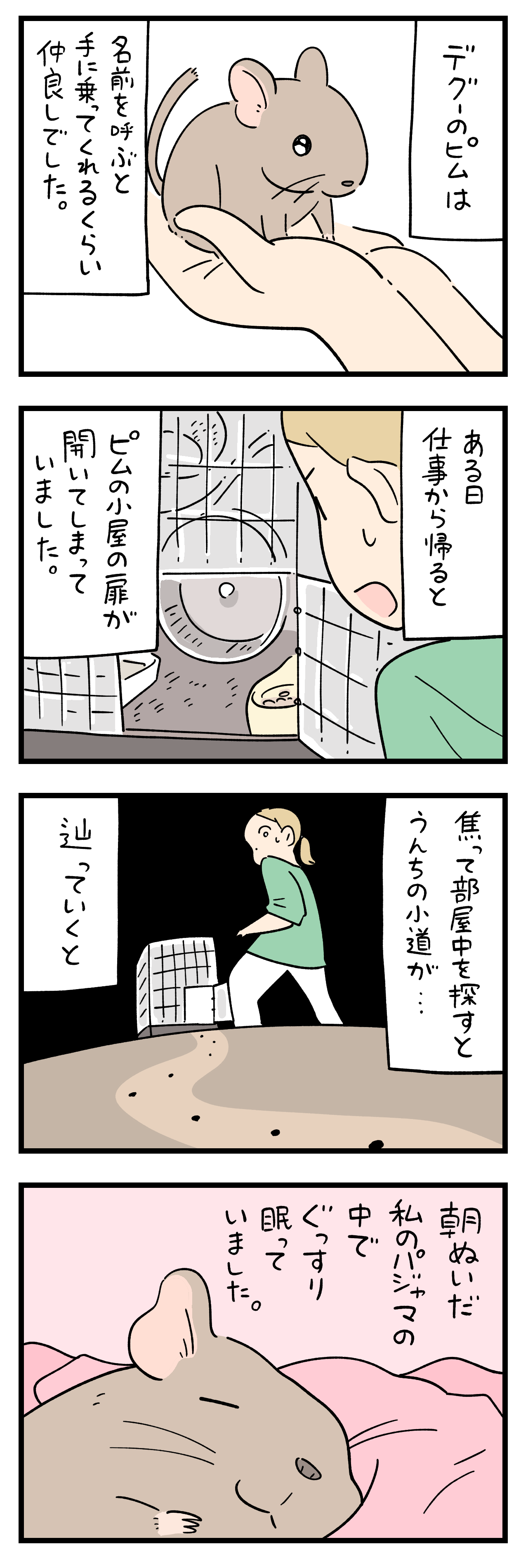 「ペットと私のうれしい体験」7 2024年05月09日 ひとこと体験談「ペットと私のうれしい体験」その7書籍が出ました ちょっと怖い話50話まとめました キュンとした出来事50話まとめました ひとこと体験談の電子書籍です全巻無料で読めます! 体験談募集中ですツイッターかインスタのDMで教えて下さい! 「フォロワーさんの体験談」カテゴリの最新記事 タグ :#ペットと私のうれしい体験 < 前の記事次の記事 > コメント コメント一覧 (6) 1. みかん 2024年05月09日 18:10 可愛い過ぎ~❤ うんちの小道笑 分かりやすくて良かったです笑 0 siroyagisanti がしました 2. メグ 2024年05月09日 18:55 愛おしい♡ 0 siroyagisanti がしました 3. どうも 2024年05月09日 21:49 齧歯類 全般 苦手 モフモフはモフモフでも… 0 siroyagisanti がしました 4. BB 2024年05月09日 22:36 はわわ〜❣️ かわわわいい❣️ いつも、楽しいお話、ありがとうございます😊 0 siroyagisanti がしました 5. 佑 2024年05月10日 08:20 デグーは顎下を撫でるとちょー可愛い顔をしてくれる。 0 siroyagisanti がしました 6. 👏 2024年05月11日 08:51 ふぁーーーー!!! 素敵ーーーー!!! かわいいいいーーー!!! 0 siroyagisanti がしました コメントフォーム 名前 コメント 記事の評価 リセット リセット 顔 星 情報を記憶 コメントを投稿する