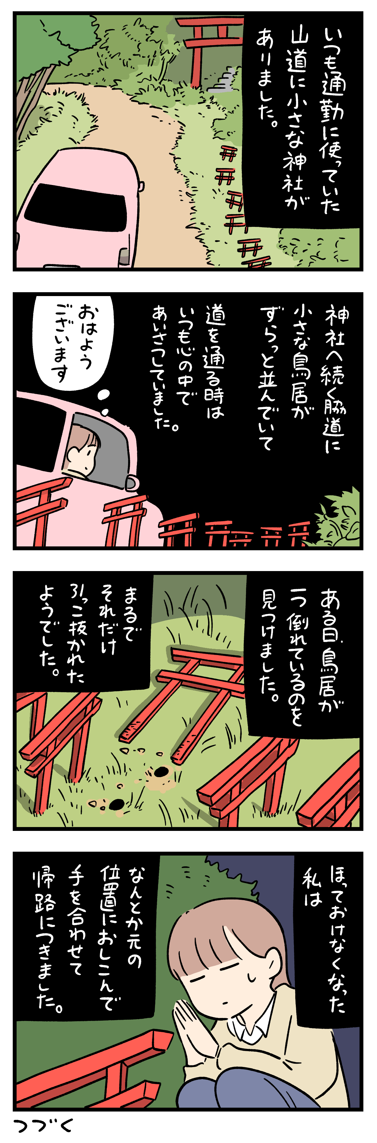 「ちょっと怖い話」251-① 2024年10月21日 5巻できました ひとこと体験談「ちょっと怖い話」その251-①書籍出ました ちょっと怖い話50話まとめました キュンとした出来事50話まとめました ひとこと体験談の電子書籍です全巻無料で読めます! 体験談募集中ですツイッターかインスタのDMで教えて下さい! 「フォロワーさんの体験談」カテゴリの最新記事 タグ :#ちょっと怖い話 < 前の記事次の記事 > コメント コメント一覧 (4) 1. 英世 2024年10月21日 18:28 投稿主さん、優しい🥹✨ でも山奥の神社で車から1人降りるのはちょっと怖い💦 0 siroyagisanti がしました 2. 見過ごせない 2024年10月21日 20:17 のは わかります ただ そんなバチ当たりな事をする輩が彷徨いてる 怖いですよ 0 siroyagisanti がしました 3. BB 2024年10月22日 01:36 正しき行ないをされたあなたには、やがて何らかの佳事が訪れる事でありましょう、、、なんちって🤤 0 siroyagisanti がしました 4. ゴーヤー 2024年10月22日 08:10 小さい鳥居はポイ捨て対策かも 知れんが、怖い話のカテゴリで 上げてるなら何かあるのかもな? 0 siroyagisanti がしました コメントフォーム 名前 コメント 記事の評価 リセット リセット 顔 星 情報を記憶 コメントを投稿する