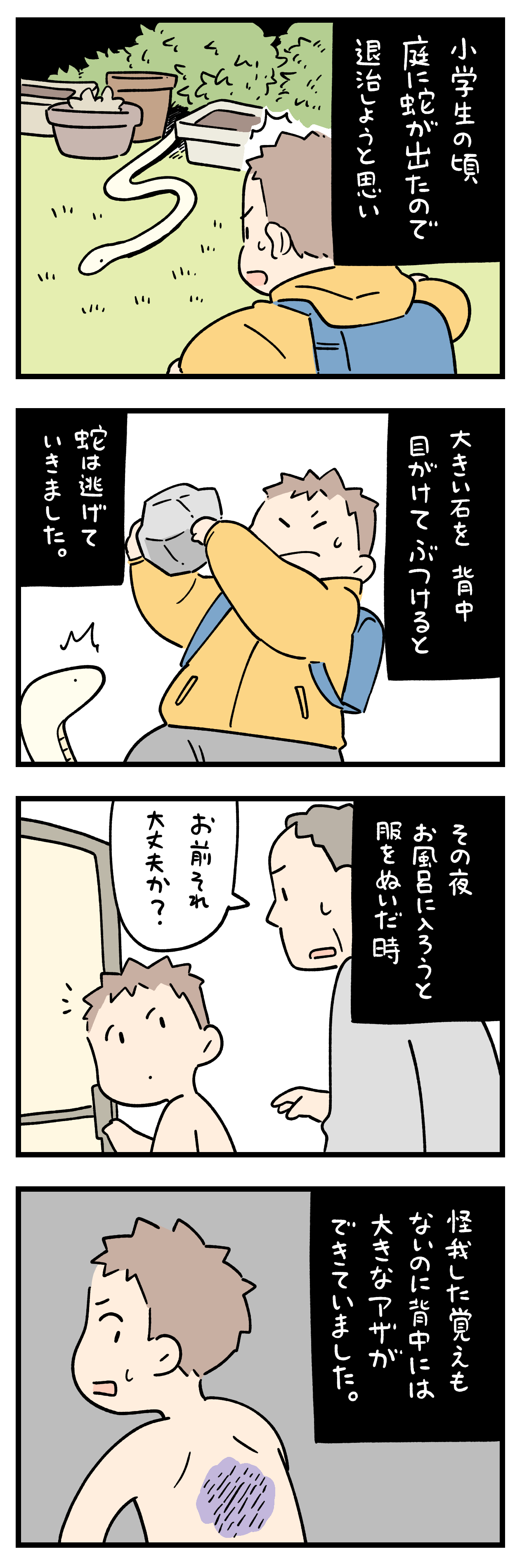 後で父に話すと「バカだな、蛇は祟るぞ。絶対手を出してはいかん。ほっておけ」と言いました。