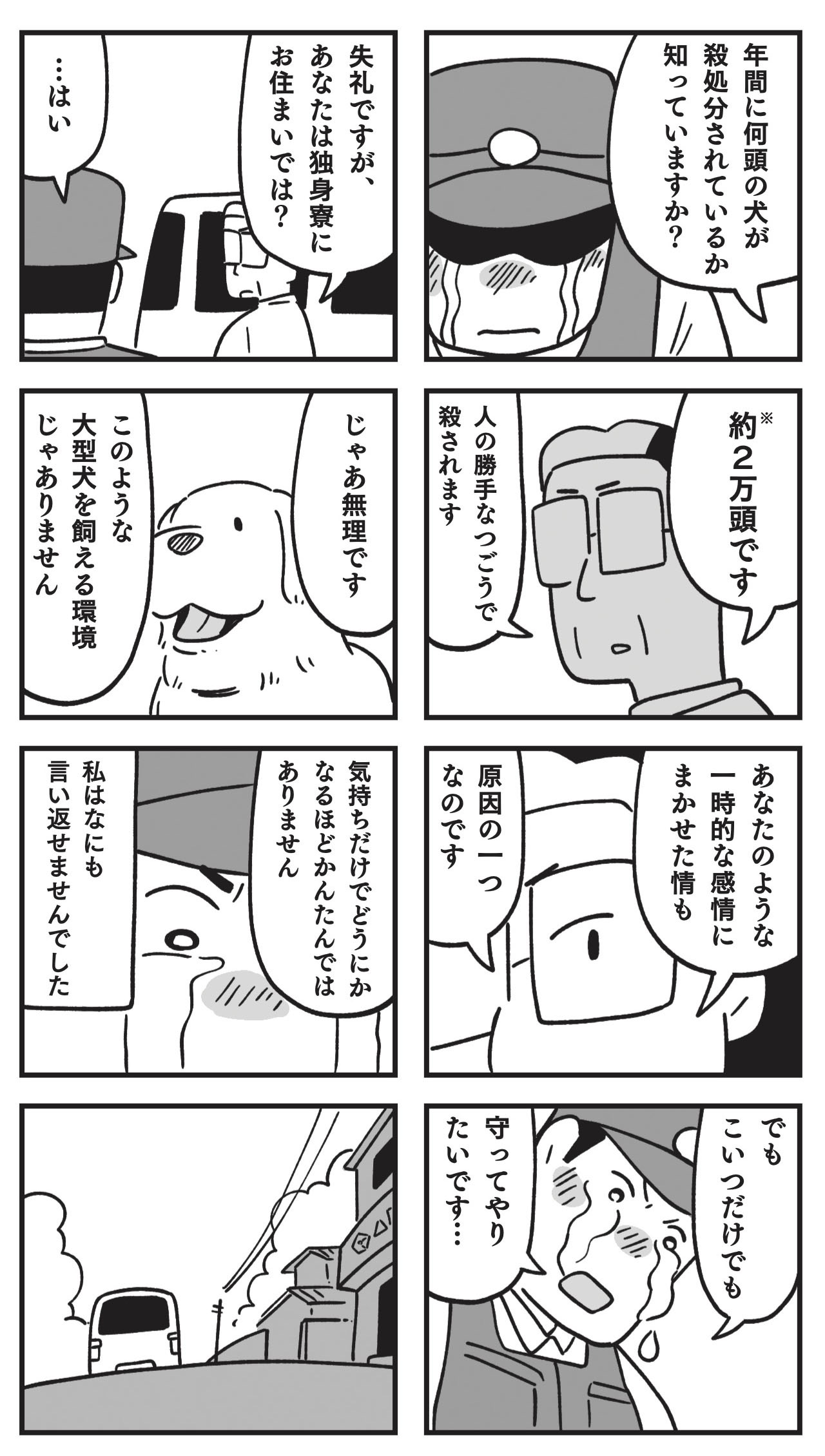 「犬が伝えたかったこと(オマエ)」 2025年03月28日 「犬が伝えたかったこと(オマエ)」「マンガ 犬が伝えたかったこと」が4月8日に発売されます。全20話で読み応えある内容になっているので是非手に取って読んでいただけたら嬉しいです! カテゴリなしの他の記事 タグ :#犬が伝えたかったこと < 前の記事次の記事 > コメント コメント一覧 (7) 1. クロコップ 2025年03月28日 18:20 うちの犬も、 0 siroyagisanti がしました 2. クロコップ 2025年03月28日 18:22 (続き)拾われた犬でした 一匹でも、という気持ちを大勢が持てば、沢山の犬を救えるのに オマエが幸せになって良かった 0 siroyagisanti がしました 3. 英世 2025年03月28日 18:29 担当の方も厳しい言葉ではあるけど優しさでもあるよね 警察官の方も、感情だけでなく覚悟を決めて責任を果たす姿勢が素敵。 働いてるし、簡単に出来る事ではないですよね オマエ、幸せになるんだよ!!!! 0 siroyagisanti がしました 4. BB 2025年03月28日 20:14 3年前に15才だった愛犬を亡くしました。 それまでは、毎日散歩して、自分にでくる、可能な限りの事をして暮らしました。 自分の現在の年齢と健康上の問題もあり、次の子を迎えるのは無理だとあきらめました。 でも、犬って本当に素晴らしいです。 今でも会いたい。また抱きしめたい。 あの子をいい子いい子したいです。 オマエちゃんが、幸せになって、良かった、本当に。 0 siroyagisanti がしました 5. みかん 2025年03月28日 21:20 我が家にもワンコが居るので、これを読んで涙が止まりません。 短い間でも絆が生まれ、行く末に涙が零れてしまう。 職員さんも、厳しい事をハッキリと言う事で、彼の本気度を測っていたのかな? どちらも優しく愛が溢れてますね。 オマエが楽しい第二の犬生を送れて良かった... 0 siroyagisanti がしました 6. 不意打ち 2025年03月28日 23:22 2つも連続で⋯絶対泣くヤツじゃん😭😭 拾われてよかったね!届けられたのがその交番で本当によかったね!! その交番には、もしかしたら「本当の飼い主に会いに来た」のかもしれないね! ご近所さんたちがみんないい人でますます泣いちゃうよ😭😭😭😭 仲良く幸せに暮らしてくれ 0 siroyagisanti がしました 7. ナースコール連打マシン 2025年03月29日 03:07 お話も素晴らしいけど、この人は「笑ってない目」を描くのも上手いのよなぁ…w 0 siroyagisanti がしました コメントフォーム 名前 コメント 記事の評価 リセット リセット 顔 星 情報を記憶 コメントを投稿する