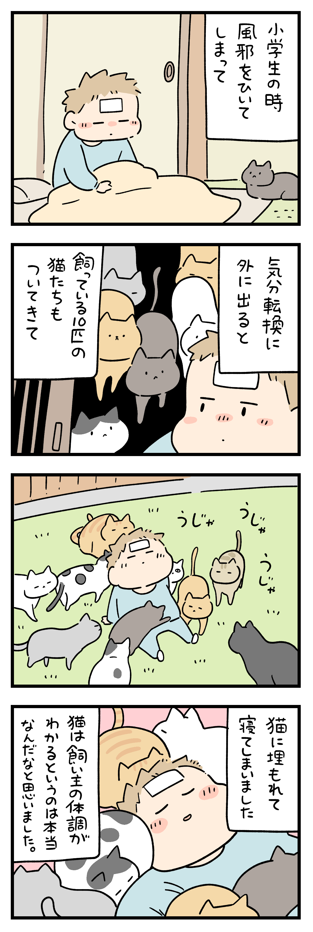「ペットと私のうれしい体験」24 2025年03月30日 ひとこと体験談「ペットと私のうれしい体験」その24他のバレンタインの話はこちら 100話までまとめました ちょっと怖い話50話まとめました キュンとした出来事50話まとめました ひとこと体験談の電子書籍です全巻無料で読めます! 体験談募集中ですツイッターかインスタのDMで教えて下さい! 「フォロワーさんの体験談」カテゴリの最新記事 タグ :#ペットと私のうれしい体験 < 前の記事次の記事 > コメント コメント一覧 (4) 1. かわいい〜!羨ましい〜! 2025年03月30日 18:38 猫まみれ💕 0 siroyagisanti がしました 2. BB 2025年03月30日 19:53 あらあら、猫ちゃん達、心配してくれたのかしら? 外で寝ちゃうと、余計具合悪くなりそうですもんね。 温めてくれたのかな? 可愛くて優しくて、夢みたいに楽しいお話ですね。 癒されました。ありがとうございます😊 0 siroyagisanti がしました 3. みかん 2025年03月30日 21:16 多頭飼いあるあるなんですね🥰 我が家にはMAX9頭のニャンさんが居ましたが、体調悪くてソファで寝てると、お腹、頭、足、腰に集まって寝てました😀 ただ眠くて寝てる時には、2・3頭居るだけなんですが... 主を心配してくれてたんですね🥺 可愛い奴らだわ🥺❤️ 0 siroyagisanti がしました 4. ねこ 2025年04月02日 12:31 1コマ目で猫か〜かわいいってなってたら、10匹というパワーワードw 多頭飼いならではのいい話ですね。 0 siroyagisanti がしました コメントフォーム 名前 コメント 記事の評価 リセット リセット 顔 星 情報を記憶 コメントを投稿する