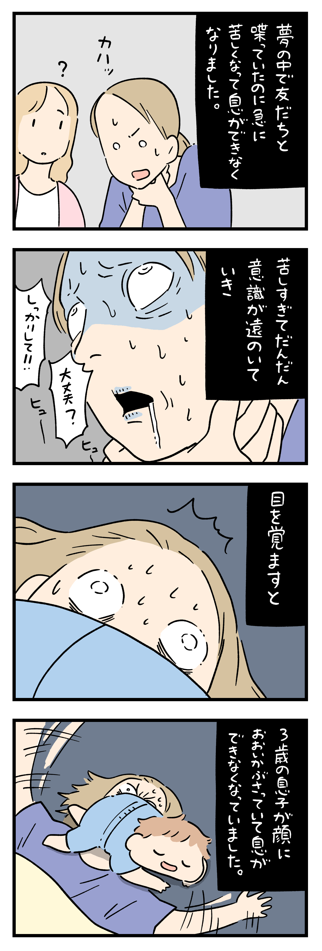 「ちょっと怖い話」349 2025年10月20日 ちにかみのLINEスタンプ作りました! ひとこと体験談「ちょっと怖い話」その349 ちょっと怖い話50話まとめました キュンとした出来事50話まとめました ひとこと体験談の電子書籍です全巻無料で読めます! 体験談募集中ですツイッターかインスタのDMで教えて下さい! 「フォロワーさんの体験談」カテゴリの最新記事 タグ :#ちょっと怖い話 < 前の記事次の記事 > コメント コメント一覧 (5) 1. ママメロン 2025年10月20日 18:43 さすがに3歳児はヤバい! 0 siroyagisanti がしました 2. BB 2025年10月20日 18:46 ありますよ〜 自分でわざわざ変な格好してて、苦しくなって、「ウワッ」と目覚める事ねえ。 ちなみに、自分は真上を向いて眠ると、良く金縛りになるので、もっぱら横向き眠りです。 余りに寝相が悪くて、1度だけ肩を亜脱臼した事もあります。 0 siroyagisanti がしました 3. みゆ 2025年10月20日 21:53 私の友達は寝ている時に猫が顔に乗っかって窒息しそうになって飛び起きました 顔から滑り落ちた猫は「気持ちよく乗っかってるのを邪魔しやがって」と、友達にシャーッ!と爪を立てて飛びかかってきたそうです… 0 siroyagisanti がしました 5. ありゃ 2025年10月21日 08:40 >>3 猫繋がりで 床の上に仰向けになって寝っ転がっていた時のことです 近くの椅子の上からジャンプした猫がお腹に着地し、悶絶しました😫💦 それでも嬉しい!猫は可愛い💕 下僕なる私です 0 siroyagisanti がしました 4. 🐱 2025年10月21日 07:46 目を覚まして良かったですね😰 覚めてなかったらと思うと😱…。 息子くんの可愛い寝顔だけ見てるととても生死を彷徨った修羅場に見えないな〜😅 0 siroyagisanti がしました コメントフォーム 名前 コメント 記事の評価 リセット リセット 顔 星 情報を記憶 コメントを投稿する