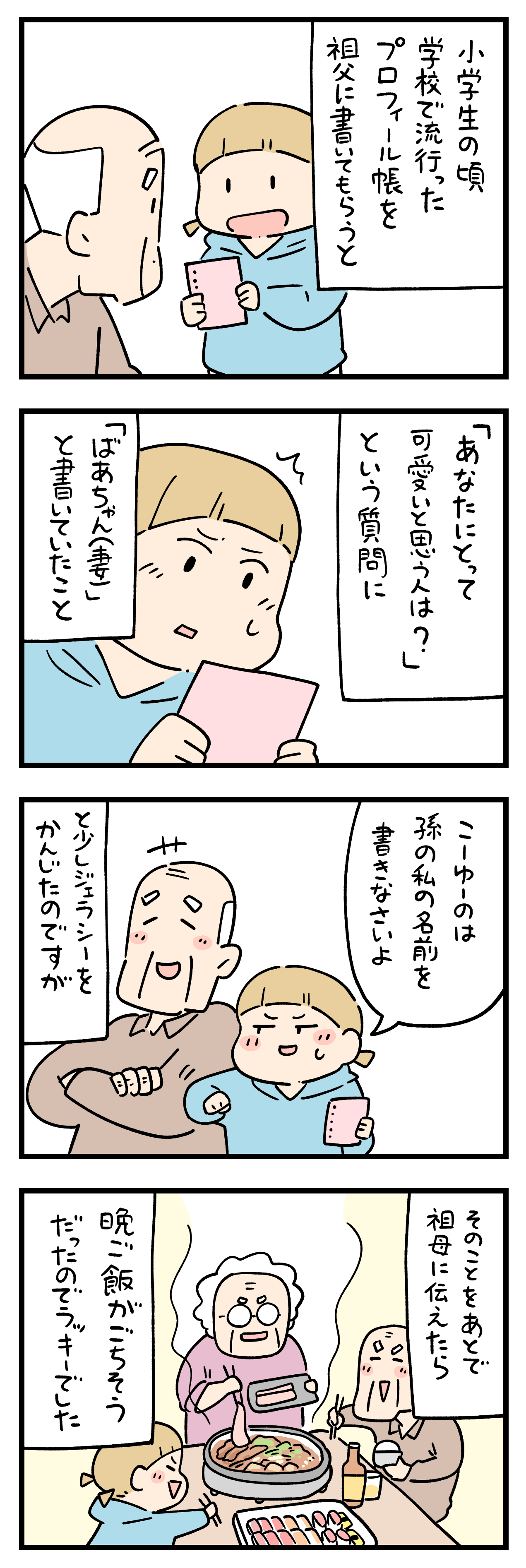 「お年寄りにキュンとした出来事」108 2025年11月08日 おばけ手帖でました! ひとこと体験談「お年寄りにキュンとした出来事」その108 ちょっと怖い話50話まとめました キュンとした出来事50話まとめました ひとこと体験談の電子書籍です全巻無料で読めます! 体験談募集中ですツイッターかインスタのDMで教えて下さい! 「フォロワーさんの体験談」カテゴリの最新記事 タグ :#お年寄りにキュンとした出来事 < 前の記事次の記事 > コメント コメント一覧 (4) 1. みかん 2025年11月08日 18:09 じいちゃんもばあちゃんも可愛い🥰 ヤキモチ焼いちゃったけど、夕飯豪華で良かったね😁✨ 0 siroyagisanti がしました 2. うん 2025年11月08日 18:11 もお!🥰皆んな可愛い。ほっこり いくつになっても、好きな人に可愛いと言われるのは嬉しいですよね 0 siroyagisanti がしました 3. BB 2025年11月08日 18:38 ええ話やあ〜❣️ 何もかも、たまらない。 ばあちゃんをかわいいと言っちゃうじいさま。 ちょっとジェラシーの孫娘。 ごちそうを作っちゃうおばあちゃん👵 みんなかわいくて、皆んないい🥰 0 siroyagisanti がしました 4. ニコラ 2025年11月08日 18:40 エンダァァァーイヤー♩ 0 siroyagisanti がしました コメントフォーム 名前 コメント 記事の評価 リセット リセット 顔 星 情報を記憶 コメントを投稿する