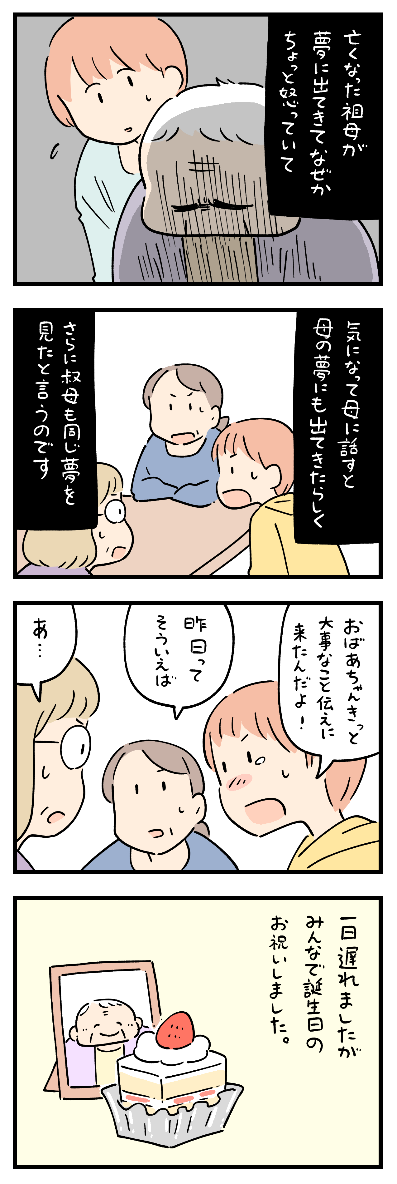 「ちょっと怖い話」377 2025年12月30日 ちにかみのLINEスタンプ作りました! ひとこと体験談「ちょっと怖い話」その377 ちょっと怖い話50話まとめました キュンとした出来事50話まとめました ひとこと体験談の電子書籍です全巻無料で読めます! 体験談募集中ですツイッターかインスタのDMで教えて下さい! 「フォロワーさんの体験談」カテゴリの最新記事 タグ :#ちょっと怖い話 < 前の記事次の記事 > コメント コメント一覧 (3) 1. BB 2025年12月30日 18:09 魂って,あるんだと思うんです。 亡くなった人や生き物たちは、時々そばに来てくれていると思うんです。 そんな気持ちを思い出させてくれる、しろやぎさんのお話、とっても大好きです。 0 siroyagisanti がしました 2. うちも 2025年12月30日 18:37 天国のおじいちゃんやおばあちゃんの誕生日には 花のアレンジメントをお供えします🤭 出来れば私が行くまで転生しないで ちょっと長いけど待っててくださいとお願いしながら 0 siroyagisanti がしました 3. みかん 2025年12月30日 20:58 皆にお祝いして欲しかったんだね😊 お祝いしてもらって良かったね😊 0 siroyagisanti がしました コメントフォーム 名前 コメント 記事の評価 リセット リセット 顔 星 情報を記憶 コメントを投稿する