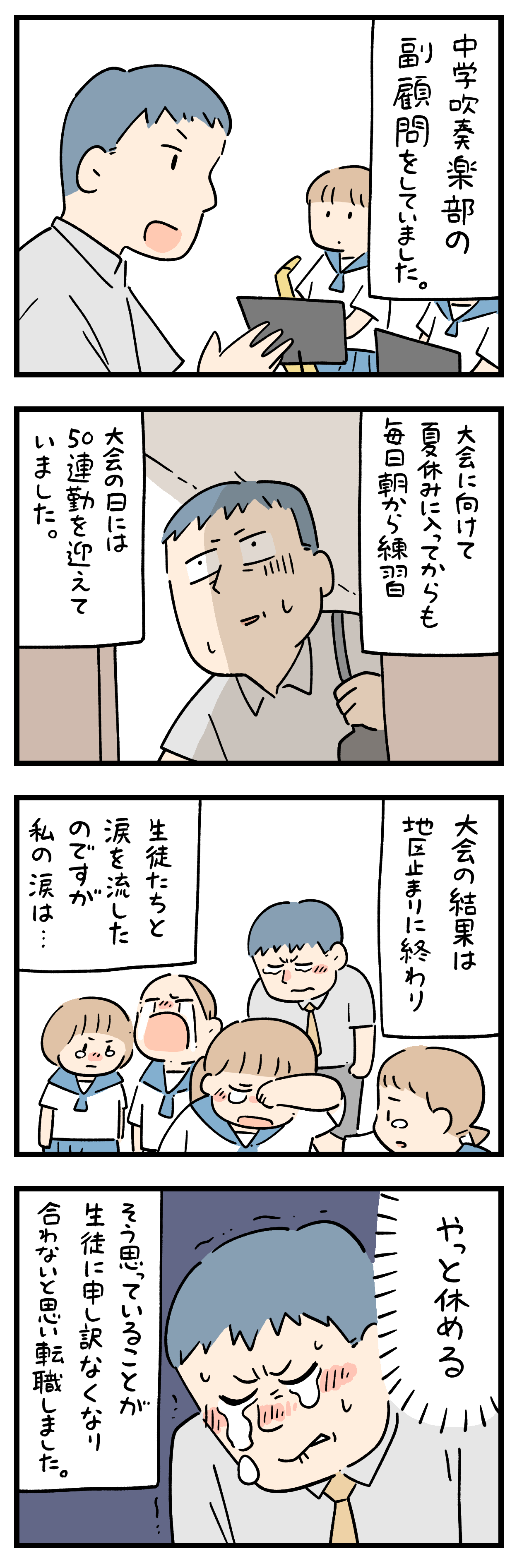 「部活のやばい話」11 2026年01月05日 ちにかみのLINEスタンプ作りました! ひとこと体験談「部活のやばい話」その11 ちょっと怖い話50話まとめました キュンとした出来事50話まとめました ひとこと体験談の電子書籍です全巻無料で読めます! 体験談募集中ですツイッターかインスタのDMで教えて下さい! 「フォロワーさんの体験談」カテゴリの最新記事 タグ :#部活のやばい話 < 前の記事次の記事 > コメント コメント一覧 (7) 1. BB 2026年01月05日 18:44 子供は体力あるけど、大人に連勤はつらいよね。 0 siroyagisanti がしました 2. 名無し 2026年01月05日 18:50 教師に向いてないんじゃなく、今の勤務体制等の諸々が教師職の現場に向いてないんだよな 0 siroyagisanti がしました 3. 匿名 2026年01月05日 18:54 中学の時吹奏楽部でしたが、コンクールで負けた時先輩方が大号泣している姿を冷めた目で見ていた記憶があります。。 0 siroyagisanti がしました 7. さ 2026年01月05日 22:17 >>3 自分も似たようなことあった バスの帰りにみんな泣いてたけど、自分だけ涙出なかった。(部活でちょっとトラブル起こしてたのもあって)熱くなれない自分が場違いのように感じてやめたな 0 siroyagisanti がしました 4. ななし 2026年01月05日 19:23 中学吹奏楽部だったけど、色々トラウマで大人になった今でもテレビでもクラシックコンサートとか観れない。楽器演奏するのも観るのも大好きだったのに。 とにかく勝つ為勝つ為で、何のための部活動なんだろなーって思う。 0 siroyagisanti がしました 5. みかん 2026年01月05日 19:49 正直な気持ちよね🥺 仕方ないです。 転職までしてしまったって… この方は本当の先生の気がする… 0 siroyagisanti がしました 6. なると 2026年01月05日 21:14 部活教えるのは外部の人頼んで、授業教える先生はそっち専門にしたらいいと思う。教師って長時間労働や雑務多いしそりゃ教師目指す人も減るよ。。 0 siroyagisanti がしました コメントフォーム 名前 コメント 記事の評価 リセット リセット 顔 星 情報を記憶 コメントを投稿する