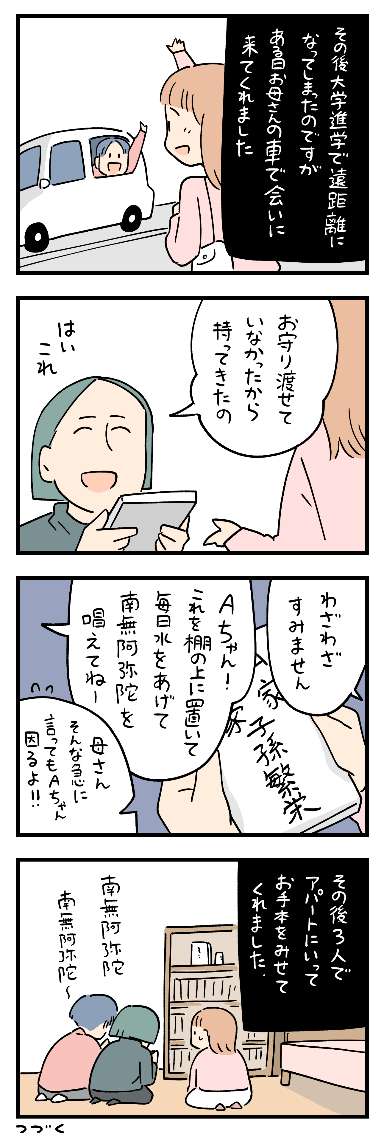 「ちょっと怖い話」384-② 2026年01月26日 ちにかみのLINEスタンプ作りました! ひとこと体験談「ちょっと怖い話」その384-② ちょっと怖い話50話まとめました キュンとした出来事50話まとめました ひとこと体験談の電子書籍です全巻無料で読めます! 体験談募集中ですツイッターかインスタのDMで教えて下さい! 「フォロワーさんの体験談」カテゴリの最新記事 タグ :#ちょっと怖い話 < 前の記事次の記事 > コメント コメント一覧 (6) 1. BB 2026年01月26日 18:34 南無阿弥陀仏なら、浄土真宗ですかな? 0 siroyagisanti がしました 2. ありゃ 2026年01月26日 18:39 この彼氏、デートなのにお母さんと一緒? かと思えばお守り! まだ渡してなかったんかい💦 そして子孫繁栄のお守り? よく見えないけどA家と彼氏家ということ? え?彼氏というより婚約者なの!? お守りと言えば神道系かと思いきや違うんだ? ハテナマークだらけになっちゃった 0 siroyagisanti がしました 3. 名無し 2026年01月26日 19:38 付き合って間もない段階で子孫繁栄は重い… 0 siroyagisanti がしました 4. 2026年01月26日 21:24 天照大神は神道だけど南無阿弥陀仏は仏教系 神仏習合ダネ 0 siroyagisanti がしました 5. ななしさん 2026年01月26日 21:35 大学生なっても付き合ってたんだ…このお母さん宗教染まりすぎてヤバいって感じする😅続き気になるー! 0 siroyagisanti がしました 6. 🐱 2026年01月26日 23:35 まだイカれた彼氏と付き合ってたんだね😨 たかが息子の彼女なだけで子孫繁栄のお守りはキツイし、怖いよ😱…。 まともな家じゃなさそうだし、近所からもヤバい人扱いされてると思うから年頃の娘さんが居るお家からは警戒されてるんじゃない? 接触させない為に県外の大学に進学など地元以外に逃がして居させないようにしてるかも…。 結果、年頃の嫁候補が居ない。 息子は男だから産めないし、跡取りが欲しい・産んで欲しいから彼女である主人公を洗脳して結婚させて妊娠もさせて囲い込もうとしてるとか?(考えすぎかな) 自分の幸せの為にも早く逃げて別れて〜😭 0 siroyagisanti がしました コメントフォーム 名前 コメント 記事の評価 リセット リセット 顔 星 情報を記憶 コメントを投稿する