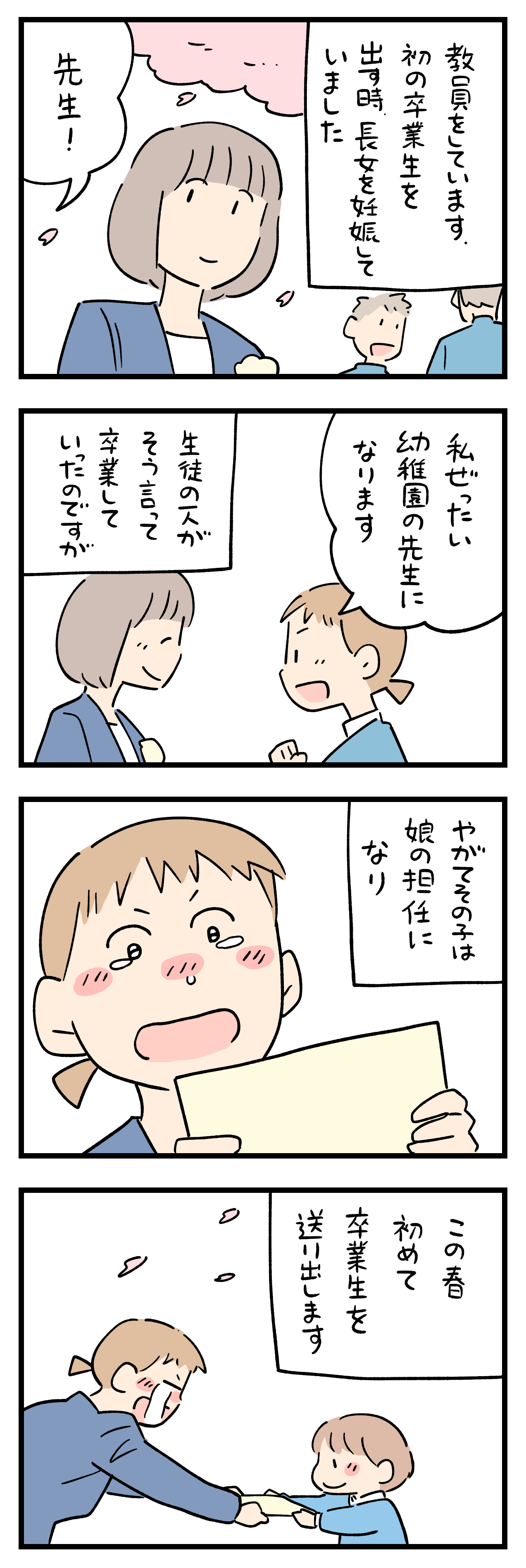 「卒業の忘れられない出来事」31 2026年03月02日 ちにかみのLINEスタンプ作りました! ひとこと体験談「卒業の忘れられない出来事」その31 ちょっと怖い話50話まとめました キュンとした出来事50話まとめました ひとこと体験談の電子書籍です全巻無料で読めます! 体験談募集中ですツイッターかインスタのDMで教えて下さい! 「フォロワーさんの体験談」カテゴリの最新記事 タグ :#卒業の忘れられない出来事 < 前の記事次の記事 > コメント コメント一覧 (3) 1. 思い出のアルバム 2026年03月02日 19:26 なんて素敵なお話。 泣いてしまった。 0 siroyagisanti がしました 2. BB 2026年03月02日 19:51 良いお話ですね。 先生になって,頑張る人って素敵です。 高校時代の友達が、小学校の先生を務め上げ、最近定年退職しましたが、苦労が多かったらしいですよ。 今の時代、子供相手よりもモンスターペアレントに手を焼くと言ってました。 0 siroyagisanti がしました 3. ななしさん 2026年03月02日 23:55 しろやぎ先生体調よくなりましたか?お大事にして下さいね 今回のお話は何というステキループ!良きですね〜 0 siroyagisanti がしました コメントフォーム 名前 コメント 記事の評価 リセット リセット 顔 星 情報を記憶 コメントを投稿する