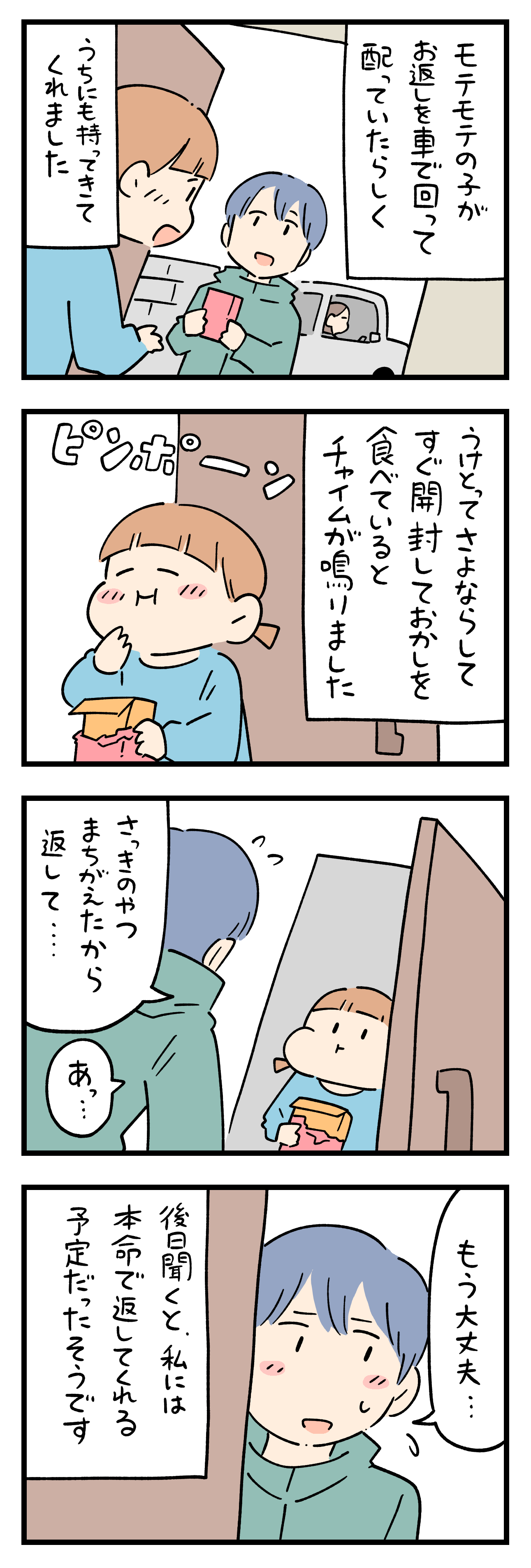 「ホワイトデーの忘れられない出来事」23 2026年03月10日 ちにかみのLINEスタンプ作りました! ひとこと体験談「ホワイトデーの忘れられない出来事」その23 ちょっと怖い話50話まとめました キュンとした出来事50話まとめました ひとこと体験談の電子書籍です全巻無料で読めます! 体験談募集中ですツイッターかインスタのDMで教えて下さい! 「フォロワーさんの体験談」カテゴリの最新記事 タグ :#ホワイトデーの忘れられない出来事 < 前の記事次の記事 > コメント コメント一覧 (6) 1. BB 2026年03月10日 18:18 え?なんで?なんでもう大丈夫なの? ほおばってる顔見て気が変わったのか? それとも、もう食べられちゃったから、お菓子はあきらめたけど、本命の気持ちは変わらないの? 0 siroyagisanti がしました 2. みかん 2026年03月10日 18:43 いや〜!可愛いっ☺️ さよならして即食べちゃう女の子も、それ見て「あっ...」ってもう大丈夫って言う男の子も☺️ 0 siroyagisanti がしました 3. どっちだ~! 2026年03月10日 18:55 すぐにお菓子を食べてる姿を見て蛙化したんか? それとも、もう照れくさすぎて言えなかったのか? どっちだ~! 0 siroyagisanti がしました 4. ありゃ 2026年03月10日 19:15 チョコくれた子の住所を聞いて、お母さんと配って回ってるのかな? 今どきだね〜 0 siroyagisanti がしました 5. ぬっこ 2026年03月11日 17:23 後日彼に聞いたんだよね(*´艸`*) 0 siroyagisanti がしました 6. んー? 2026年03月17日 22:08 わかりにくいな 本命ではなくなったの?そらとも本命は継続? 男の子の表情は 悪い意味? 0 siroyagisanti がしました コメントフォーム 名前 コメント 記事の評価 リセット リセット 顔 星 情報を記憶 コメントを投稿する